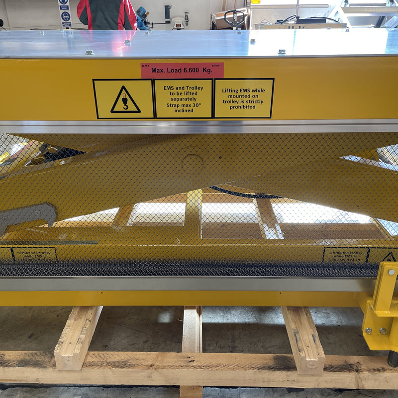 Vi har levert en spesiell løsning til ABB i Sverige for bruk i deres aluminiumproduksjon. Løftebordet er en sentral komponent i et AL-EMS-system (Electromagnetic Stirring System), hvor det brukes til å løfte og plassere en EMS-omrører under en gryte med smeltet aluminium. Dette krever presisjon, stabilitet og høy sikkerhet – noe vår løsning leverer i full grad.