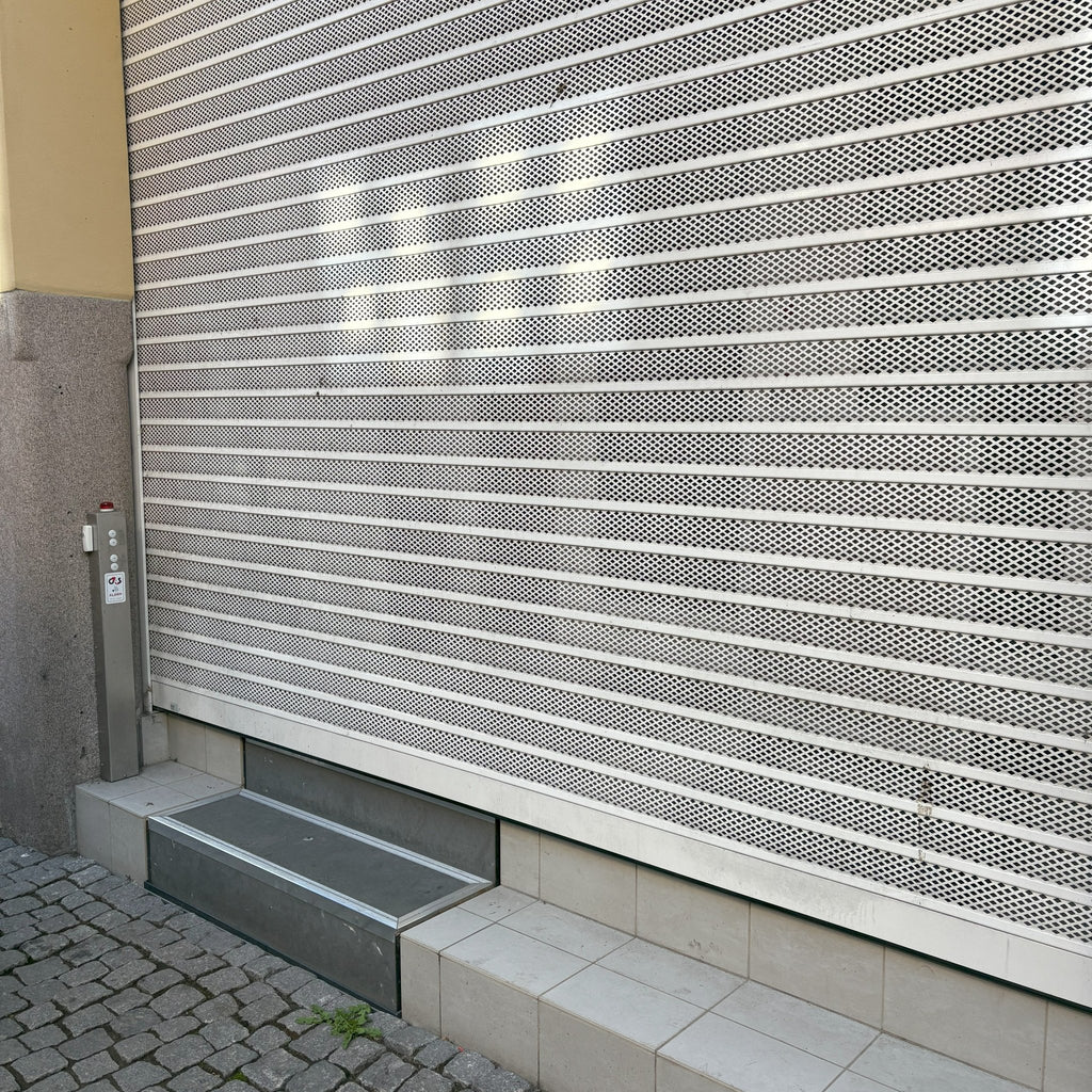 Denne trappeheisen er montert utendørs foran en butikk på Frederiksgade i Aarhus.